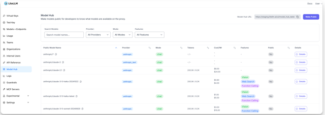 Navigate to the Model Hub page in the Admin UI (PROXY_BASE_URL/ui/?login=success&page=model-hub-table)